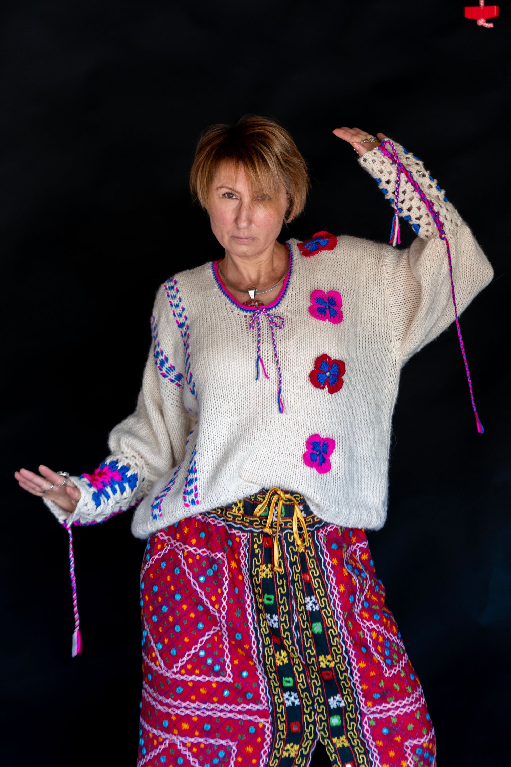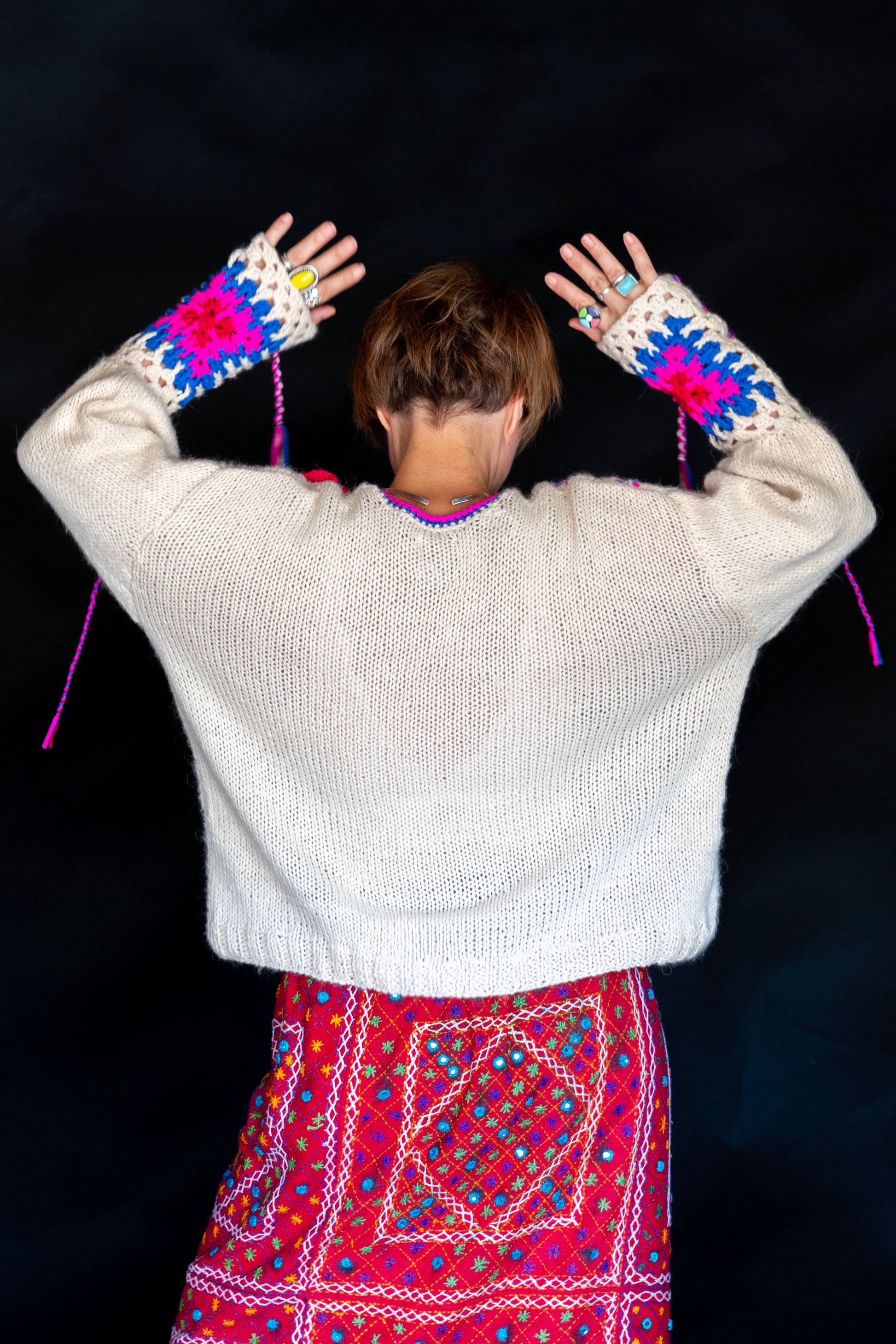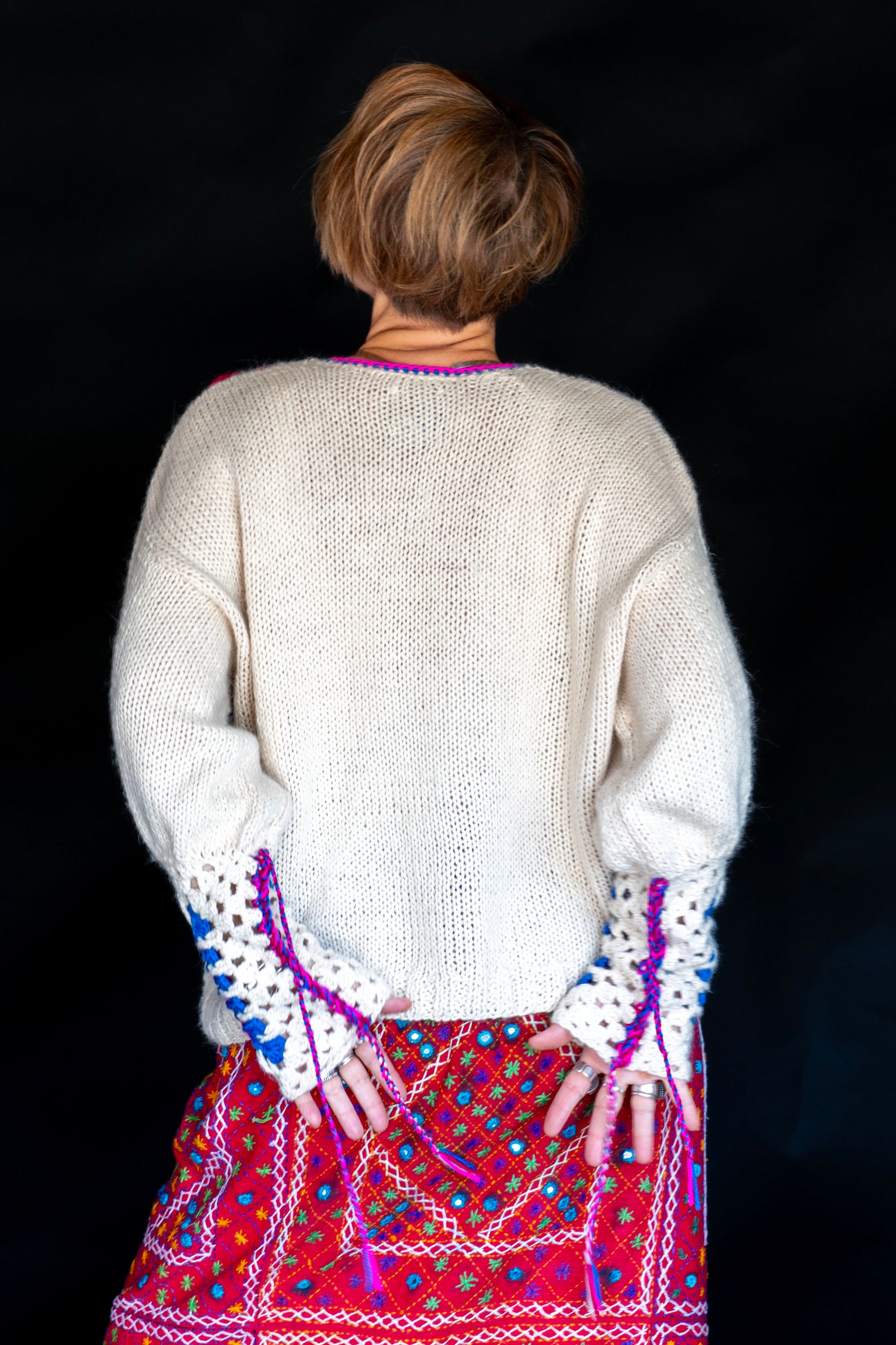 An heirloom in the making, IE#1 is a hand-crafted masterpiece by Clara Jacobs, inspired by the rich artistry of her Romanian heritage. Exquisitely knitted from the finest merino and alpaca blend, this one-of-a-kind sweater combines timeless elegance with contemporary sophistication. A statement of refined craftsmanship and individuality, IE#1 is designed to be as versatile as it is enduring—an artful garment to treasure for years to come.