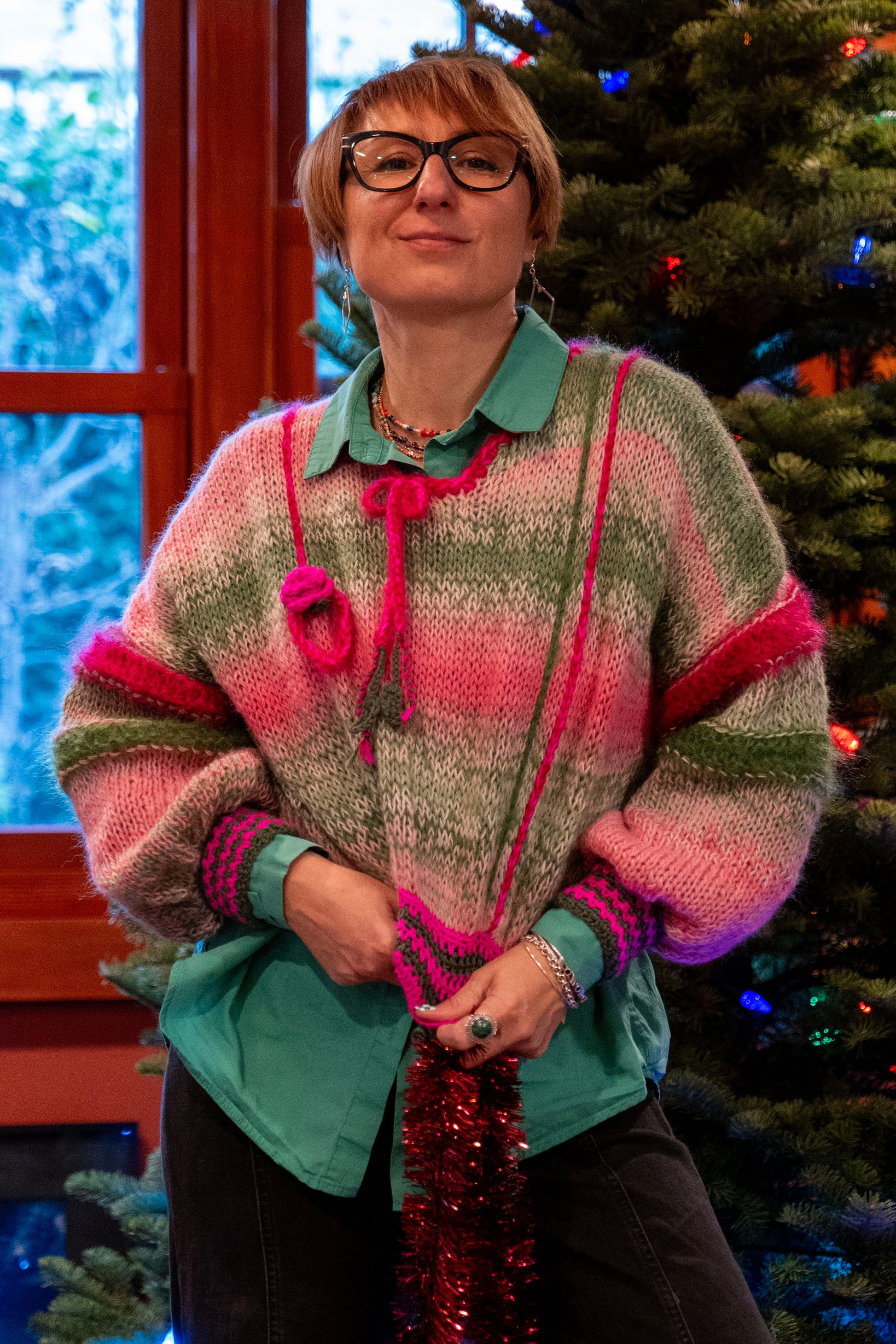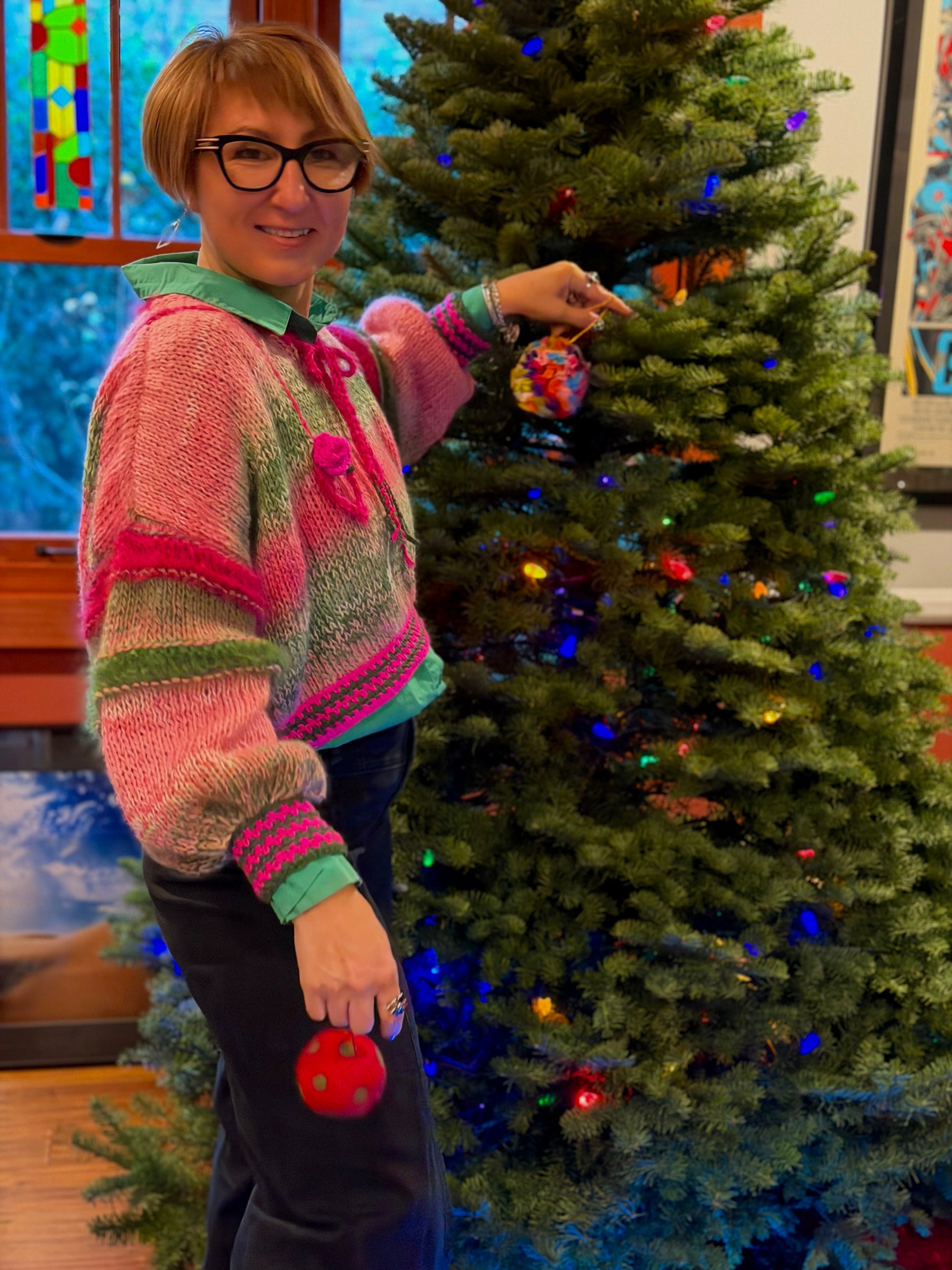 Wrap yourself in wearable art. This handcrafted sweater is made from luxurious merino wool blended with chunky mohair for an irresistibly soft feel and rich texture. Designed to be versatile and effortlessly stylish, each piece is truly one of a kind—celebrating individuality, craftsmanship, and cozy elegance. Perfect for layering or making a statement on its own.